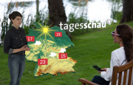 What happens when the program leaves the screen and news can suddenly be experienced in a new way, weather maps hover over your couch and the lunar eclipse takes place in your own living room. To answer this question, the tagesschau took an innovative pioneering role and produced a complete episode of the tagesschau for the first time in mixed reality.